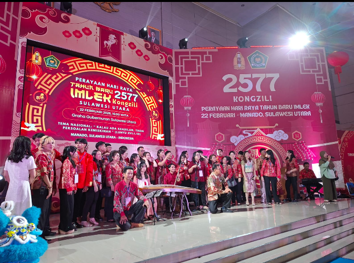 Manado, 23 Februari 2026 vilennews.online – Gubernur Sulawesi Utara (Sulut), Yulius Selvanus, turut meramaikan perayaan Hari Raya Tahun Baru Imlek 2577 Kongzili yang diselenggarakan Majelis Tinggi Agama Khonghucu Indonesia (MATAKIN) Provinsi Sulut di Graha Gubernuran, Minggu (22/02/2026). Perayaan tahun ini jatuh pada tahun Kuda Api dalam kalender Cina, yang dalam filosofi Khonghucu melambangkan kebijaksanaan, kesabaran, dan harmoni dalam kehidupan bermasyarakat. Perayaan mengangkat tema nasional yang sarat makna filosofis: “Kalau Ada Keadilan, Tiada Persoalan Kemiskinan (Lunyu XVI:1.10)”. Kutipan dari kitab suci Khonghucu Lunyu (Analekta) tersebut mengacu pada ajaran Konfusius tentang pentingnya keadilan sosial sebagai pondasi utama untuk mewujudkan kesejahteraan dan keharmonisan. Dalam pemikiran Khonghucu, keadilan (yi) merupakan salah satu nilai luhur yang harus dijunjung tinggi oleh pemimpin dan seluruh masyarakat, karena dari keadilan lahirlah kepercayaan dan kesejahteraan yang merata.